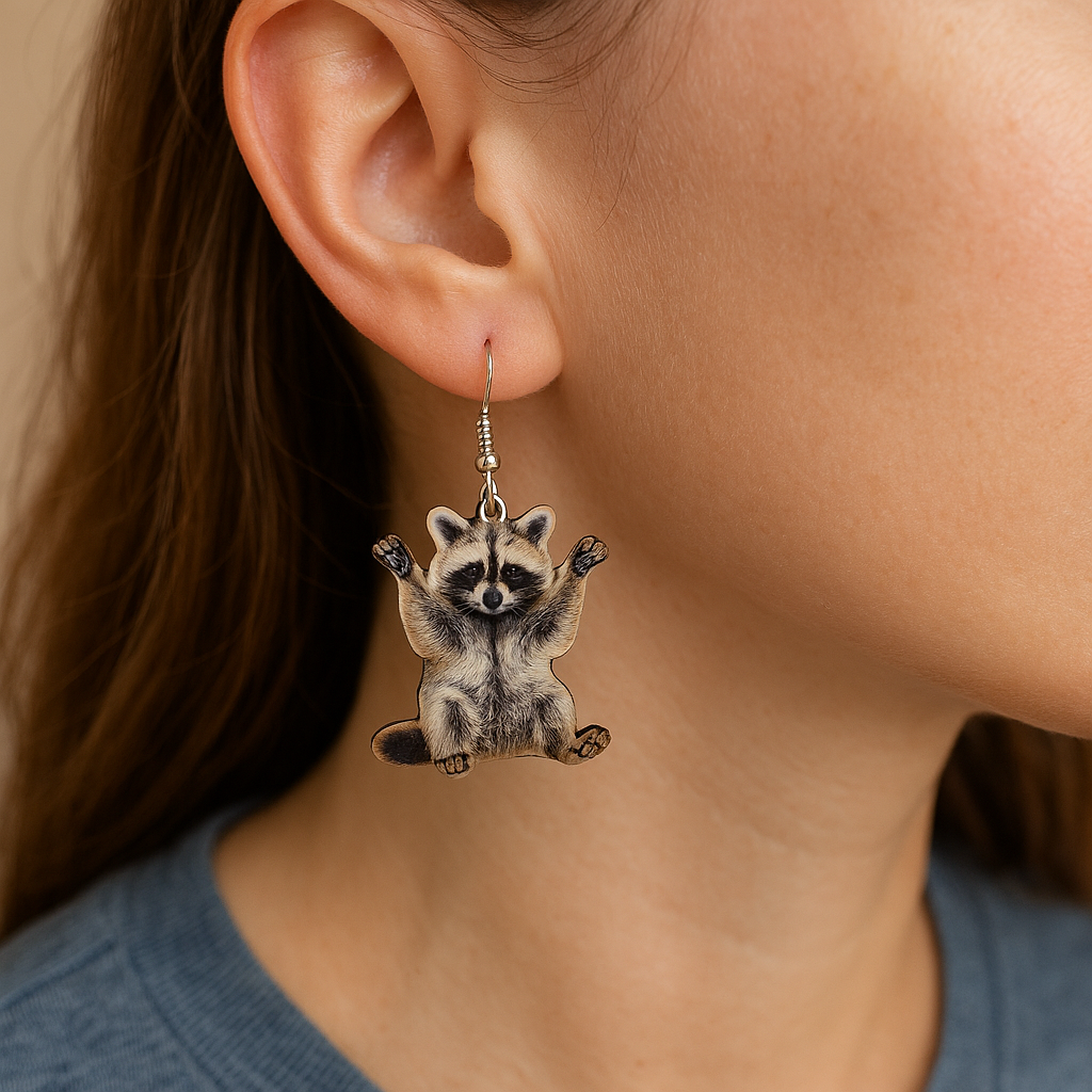 These raccoon earrings pair beautifully with cozy flannels, graphic tees, denim jackets, and casual outfits of all kinds. They’re the kind of accessory that instantly adds personality to your look. If you enjoy jewelry that feels fun, expressive, and a little bit unexpected, these earrings will fit right into your collection.